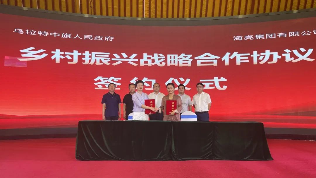 根据前期考察、座谈交流及持续沟通,双方达成合作共识。9月30日,乌拉特中旗工商联主席王英、海亮乡村教育振兴集团副总裁汪旭红代表双方签订乡村振兴战略合作协议。双方决定在教育民生、农业经济等领域开展合作。海亮教育拟与乌中旗联合实施“教育振兴综合实践区”项目,打造共建型名校共同体,盘活原有各类教育资源,探讨引入课后服务、师训干训、教育研学等海亮优质教育服务方案,推进乌中旗教育智能化、优质化、均衡化、特色化发展;围绕乌中旗特色农产品及优质资源,发挥明康汇全产业链优势,开展订单农业合作及数字农贸新业态建设,联合打造现代农业示范基地,共创巩固脱贫攻坚成果示范样板。